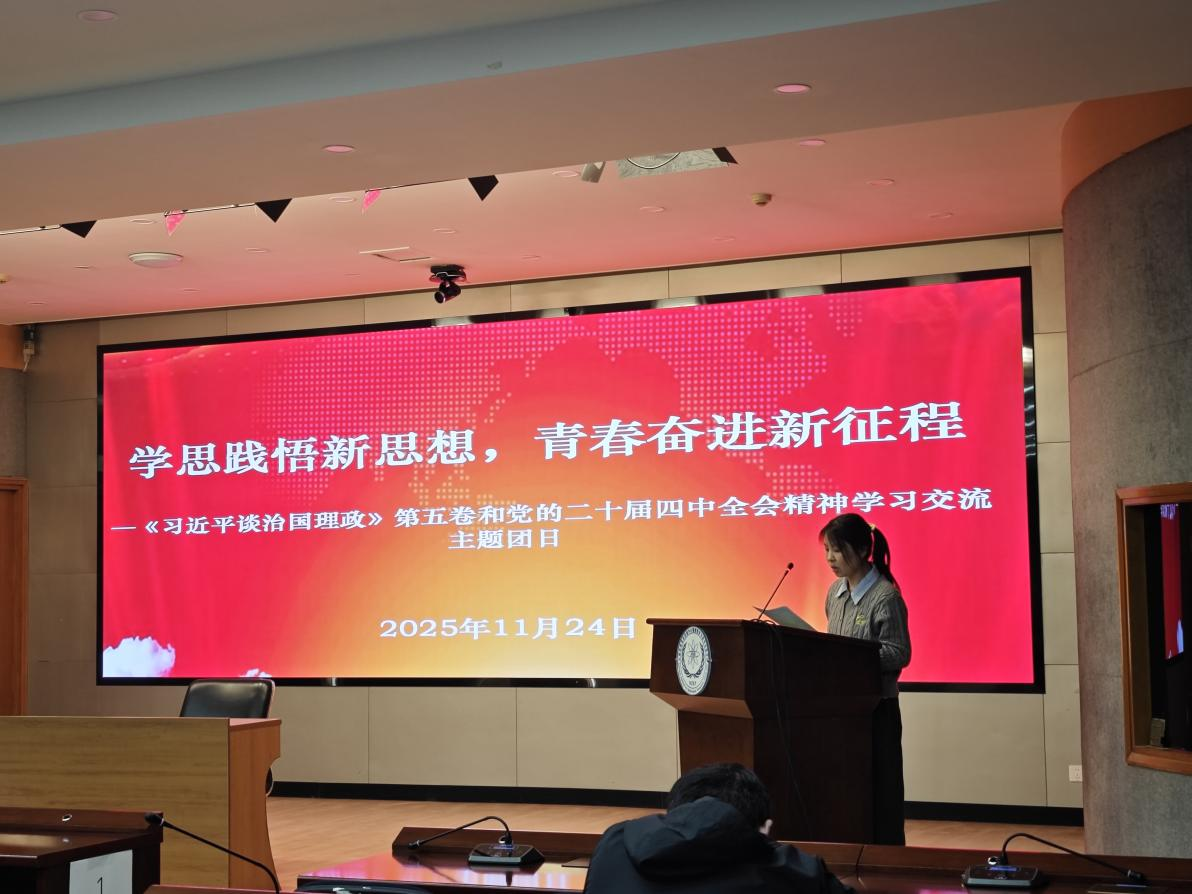 为深入学习贯彻《习近平谈治国理政》第五卷创新理论与党的二十届四中全会精神,筑牢青年干部思想根基,辐射安全所团总支于2025年11月24日开展了“学思践悟新思想,青春奋进新征程”主题团日。所团总支委员、青年理论学习小组组长及青年代表等87人参加。会议由团总支学习委员李梦雪主持。