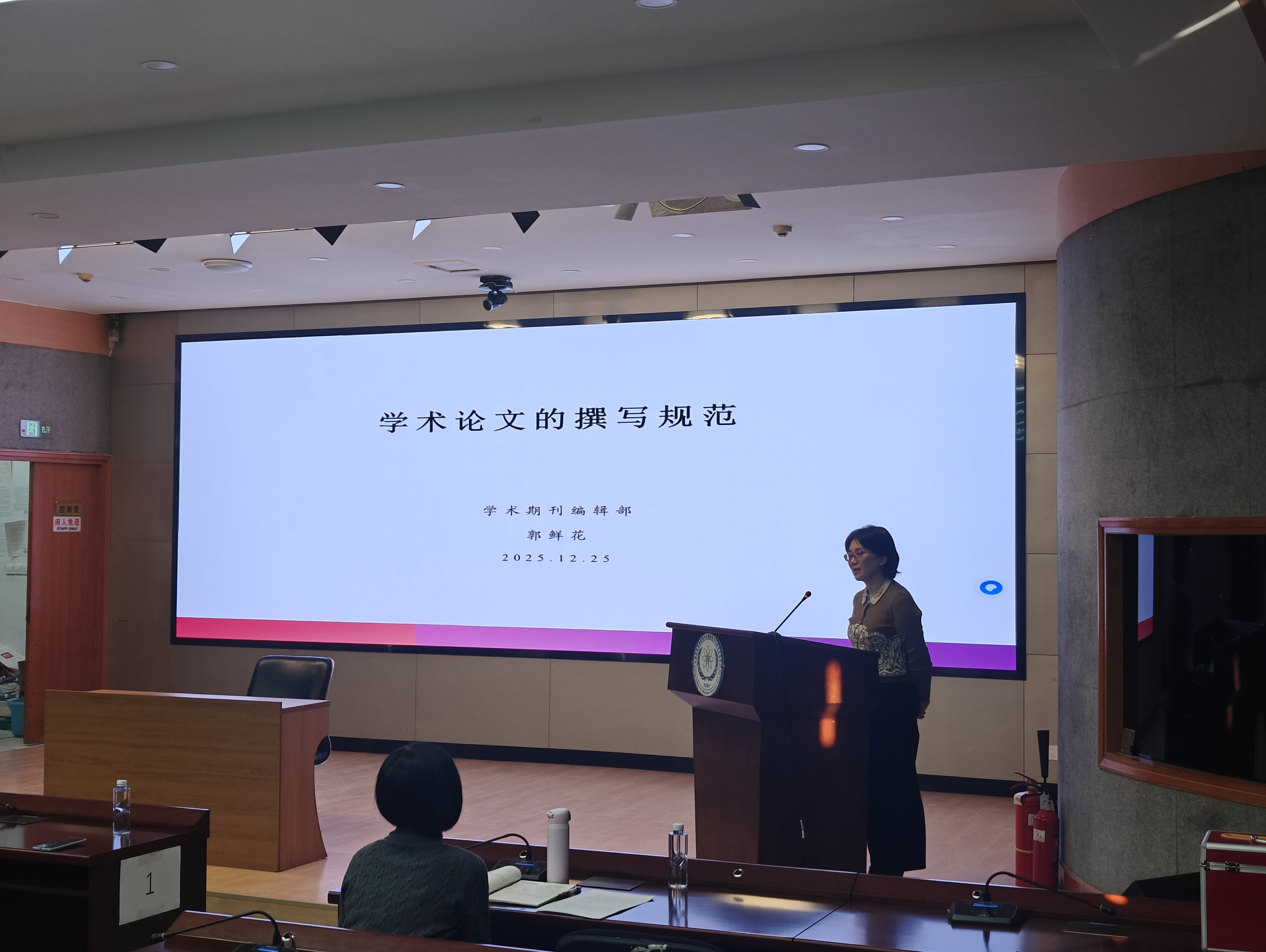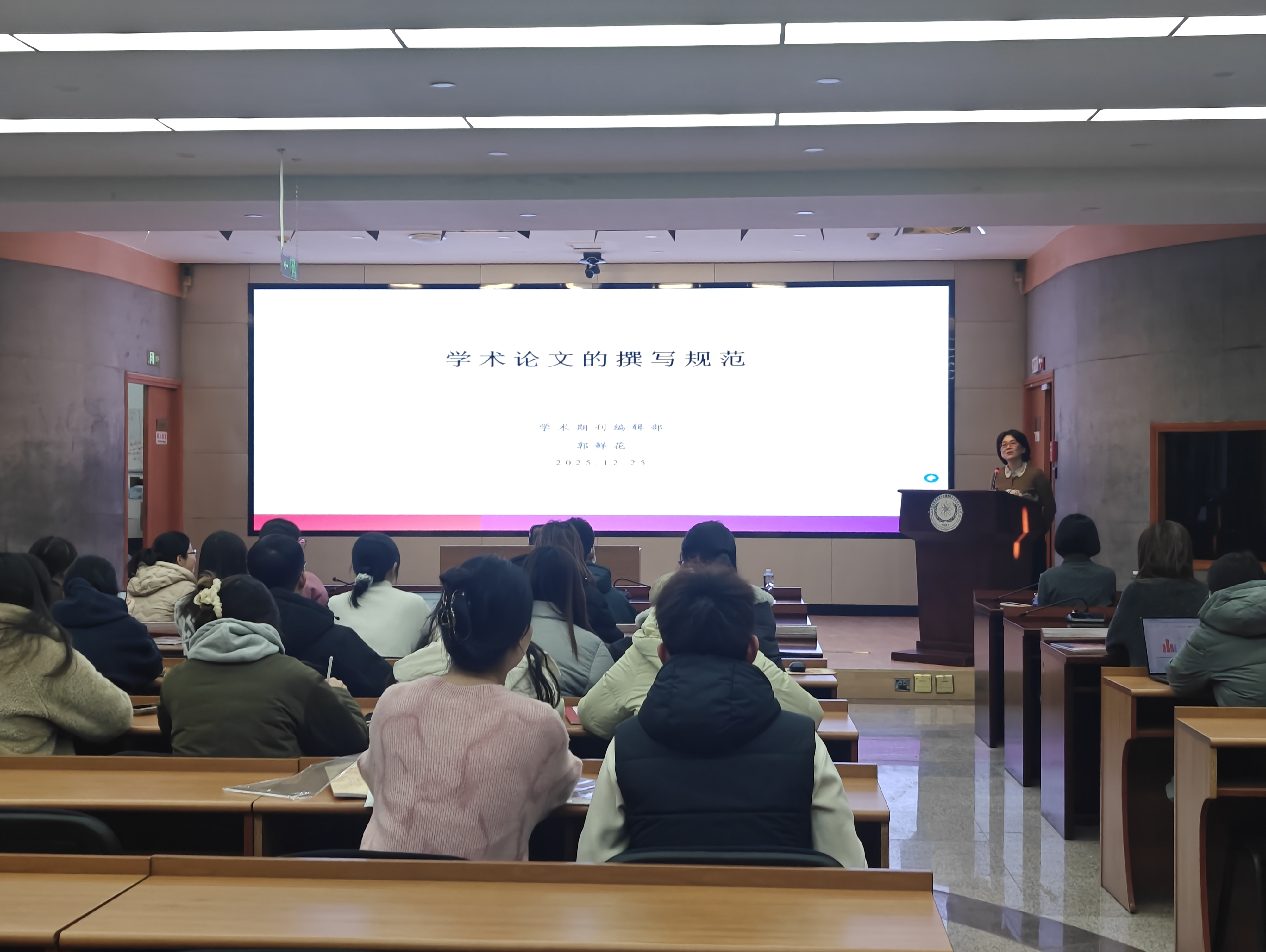 本次讲座邀请本所学术期刊编辑部郭鲜花主任主讲,郭主任以《学术论文撰写规范》为题,系统梳理学术论文撰写全流程要点,重点围绕目标期刊选择、论文结构框架搭建、语言文字与符号规范、学术诚信与合规要求等核心内容展开详细讲解。同时,结合本所主办的《中华放射医学与防护杂志》及英文期刊《Radiation Medicine and Protection》的具体投稿要求,针对性解读辐射防护领域专业术语的规范使用要点及论文撰写过程中易出现的共性问题与常见错误,现场同学们积极参与互动,交流氛围活跃。