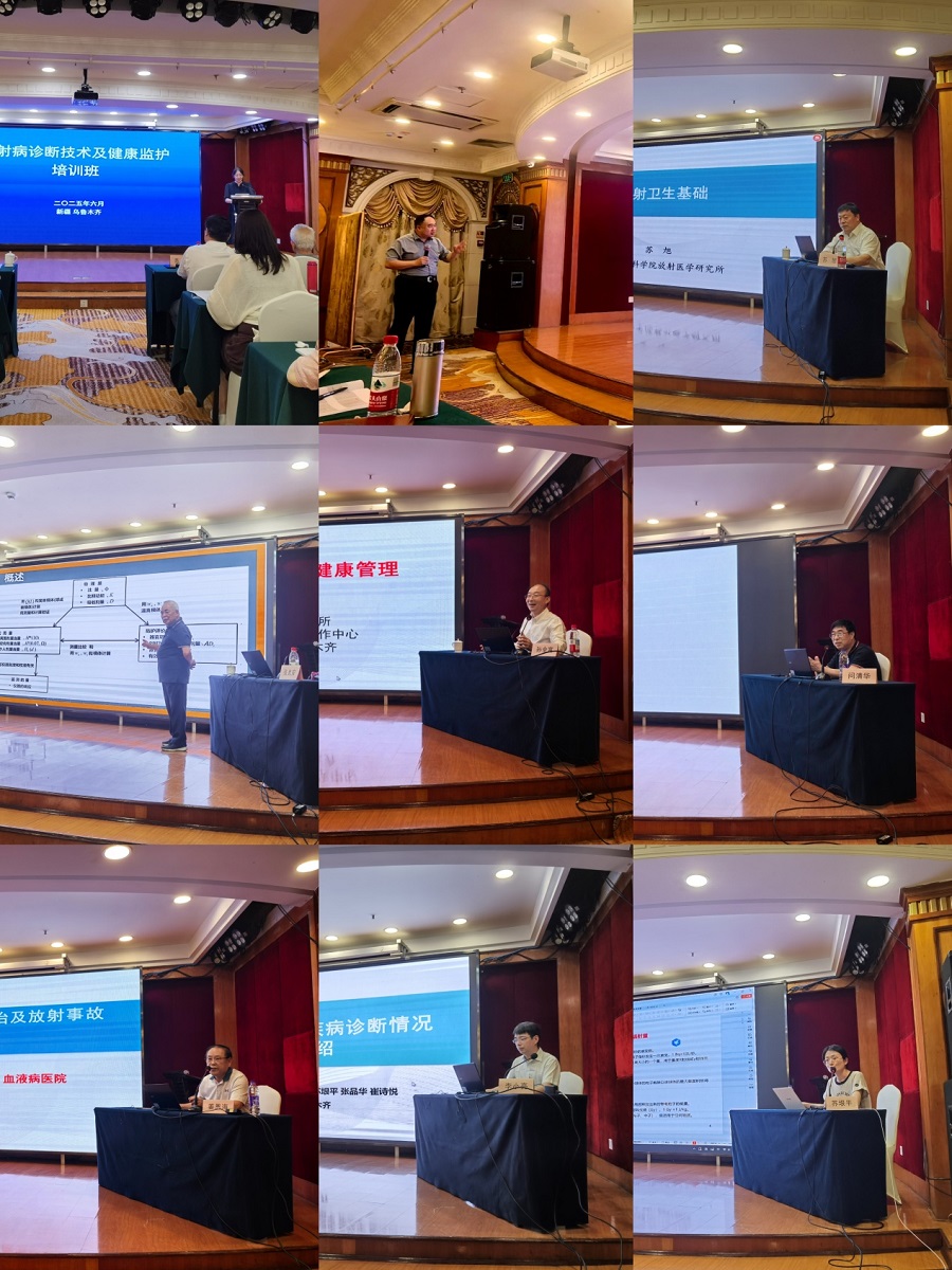 培训班邀请中国疾控中心辐射安全所、中国医学科学院放射医学研究所、中广核辐射监测中心的9位专家为学员们进行了放射卫生基础知识、电离辐射对健康的影响、放射工作人员职业健康管理、放射性疾病诊断中的物理剂量和生物剂量估算方法、放射性疾病概论及常见职业性放射性疾病诊治、职业性放射性肿瘤的归因判断和我国职业性放射性疾病诊断情况及系统介绍等放射病诊断的系列知识培训。