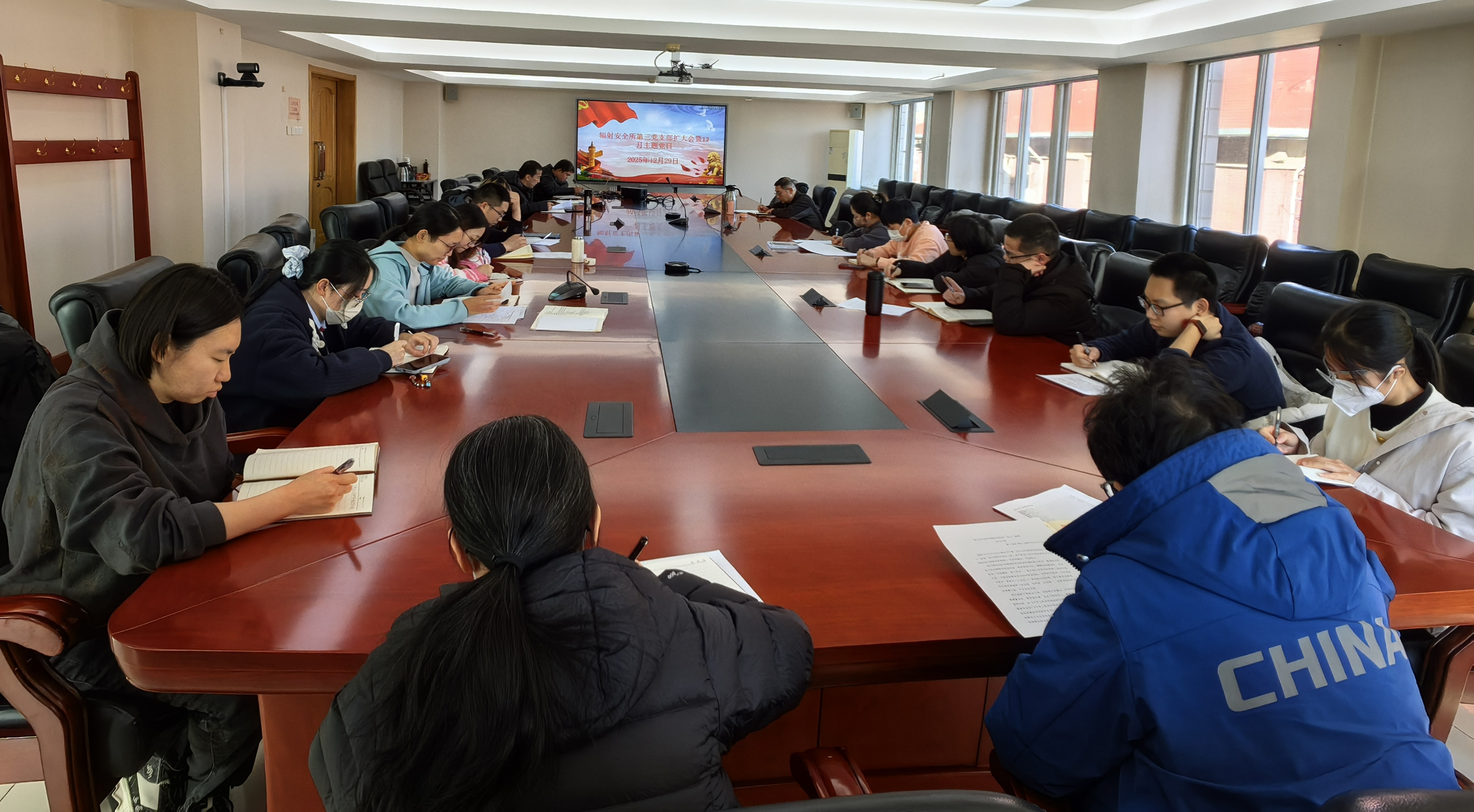为深入学习贯彻习近平法治思想和党的二十届四中全会精神,辐射安全所第三党支部联合第三青年理论学习小组于2025年12月29日开展“深学笃行习近平法治思想,贯彻落实党的二十届四中全会精神”主题党日。会议由支部书记周强主持。