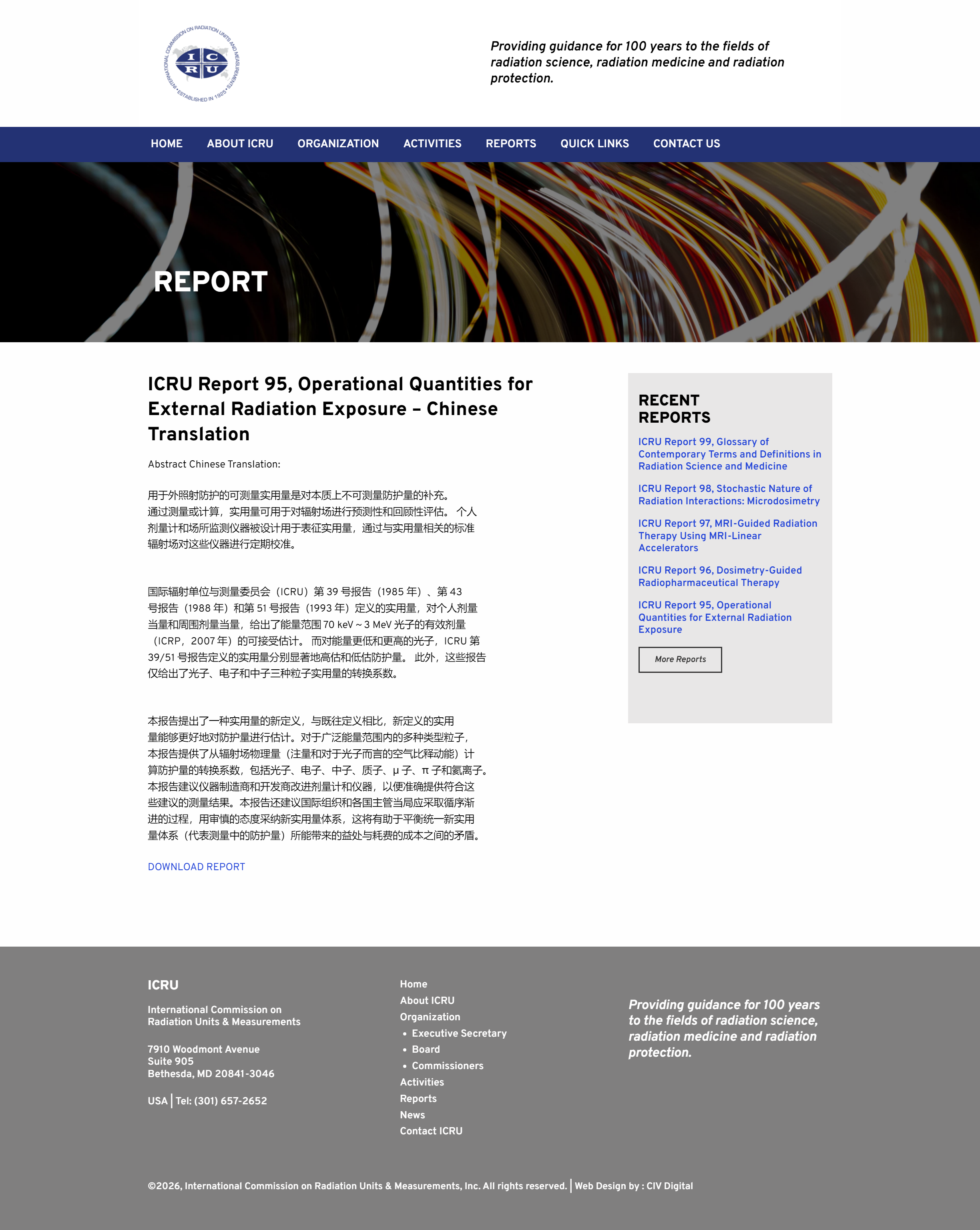 近日,由中国疾控中心辐射安全所组织翻译的国际辐射单位与测量委员会(ICRU)和国际放射防护委员会(ICRP)联合发布的ICRU 第95号报告——《用于外照射辐射的实用量》中文版已出版并在ICRU官方网站上发布(https://www.icru.org/report/icru-report-95-operational-quantities-for-external-radiation-exposure-chinese-translation/)。