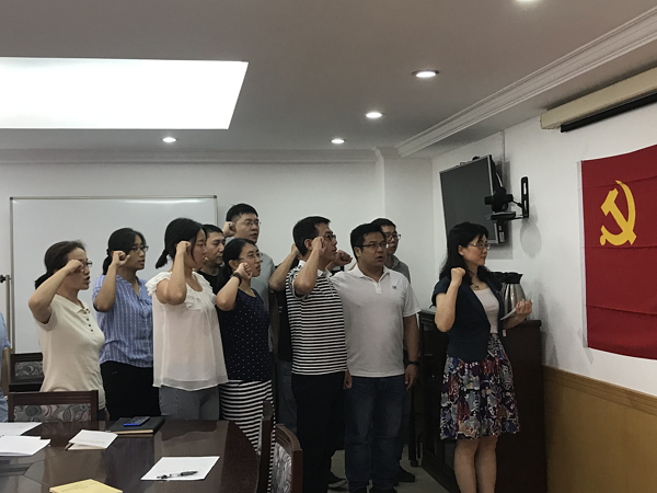 最后,为响应中共中央“严肃党内政治生活”“完善重温入党誓词、入党志愿书以及党员过‘政治生日’等政治仪式”要求,同时也是履行基层党支部建设工作的重要使命,党员自身不忘初心、牢记使命的重要仪式,支部书记郭鲜花同志带领全体参会党员,过了一个集体的党员政治生日。大家重温入党誓词,再一次坚定了自己的理想信念与初心。