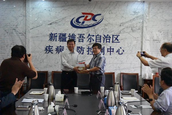 座谈会上,苏旭所长一行听取了新疆自治区疾控中心有关放射卫生工作开展情况的汇报,并与新疆自治区卫生计生委、疾控中心领导和专家进行了深入的交流。会议就今后,特别是“十三五”期间,如何进一步提升新疆维吾尔自治区放射卫生能力,开展精细化援疆工作,提出了具体的举措和建议。在会上,苏旭所长还代表中国疾控中心辐射安全所向新疆自治区疾控中心捐赠了由辐射安全所牵头主编的放射卫生专业书籍。经会议协商,初步形成中国疾控中心与新疆疾病预防控制中心在放射卫生方面援疆补充协议框架。